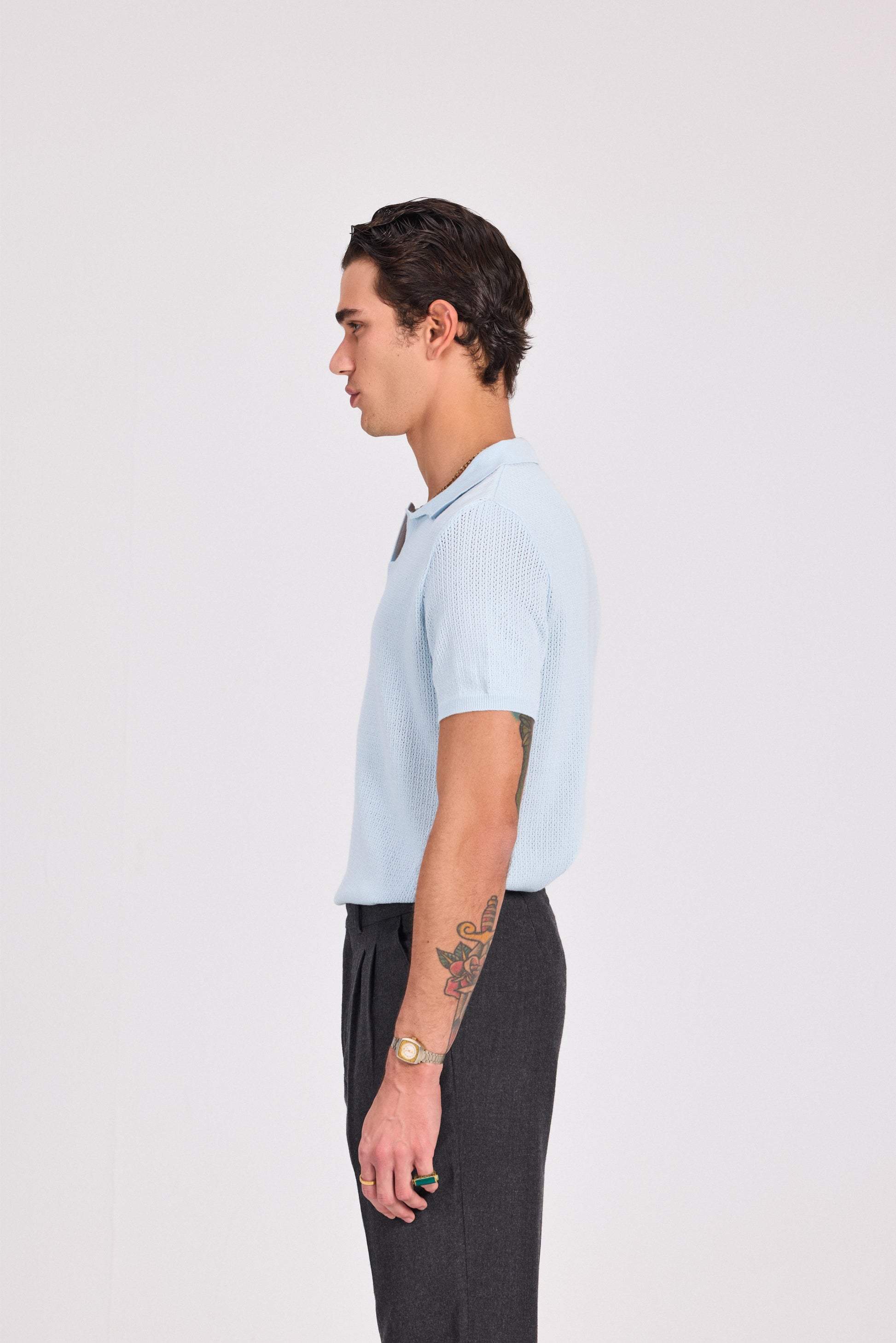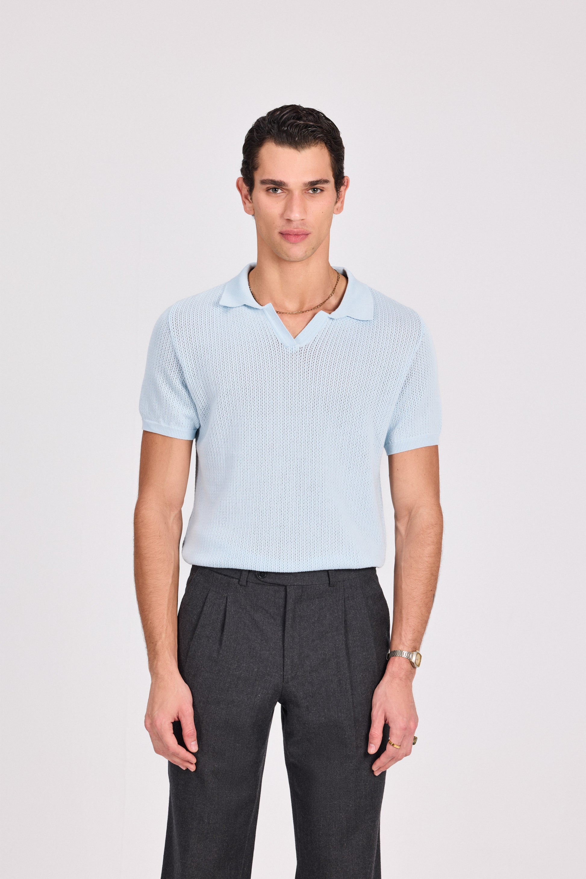 Indulge in luxury with our Knitted Polo T-Shirt. The finely woven fabric and classic polo design exude sophistication and taste. Perfect for any occasion, elevate your style with this exclusive piece. Made with comfort and elegance in mind, this polo t-shirt is a must-have in any wardrobe.